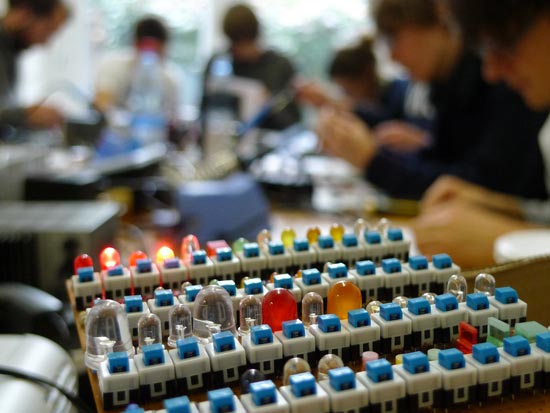 Zum Teil von Nutzer/Innen aus den basis-Ateliers organisiert oder von Kooperationspartnern angeboten, bieten sie ein breites Spektrum zwischen Steuerworkshops für kreative Freiberufler, Elektronikworkshops und vielem mehr.